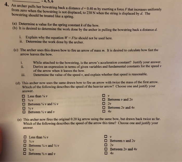Solved 4 5 6 4 An Archer Pulls Her Bowstring Back A Chegg Com