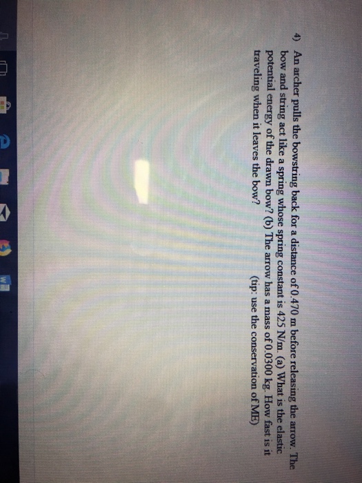 Solved An Archer Pulls The Bowstring Back For A Distance Of 0 470 Mathrm M Before Releasing The Arrow The Bow And String Act Like A Spring Whose Spring Constant Is 425 Mathrm N Mathrm M