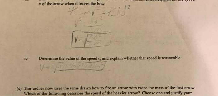 The arrow has a mass of 200 g. B The arrow has a mass of 00300. An archer pulls the bowstring back for a distance of 0400 m before releasing the arrow.